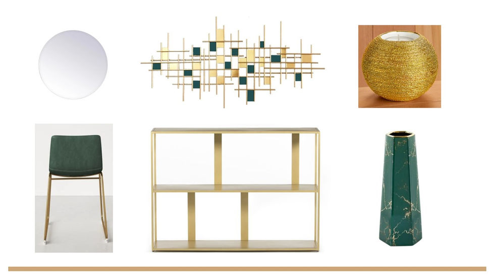 The client requested a symmetrical modern vignette to be added near their entryway. They wanted the vignette to exhibit the colors of their favorite football team, The Packers, and experiment with various textures in the area.